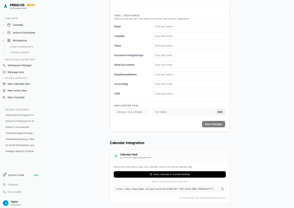 PRISM OS integrates into & on top of your existing workflow. Basic integrations with Google, Outlook, and Apple ecosystems are now available - with additional integrations available by request & coming soon.